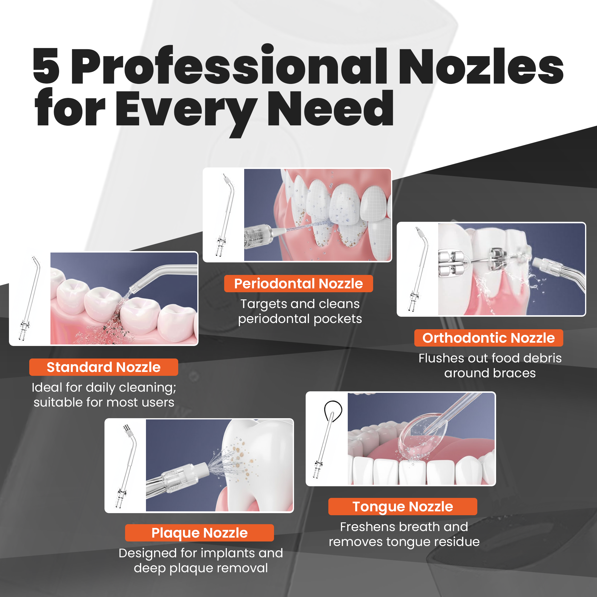 - Advanced Cleaning Power: Delivers a targeted stream of water to remove plaque and debris, improving gum health and preventing cavities.
